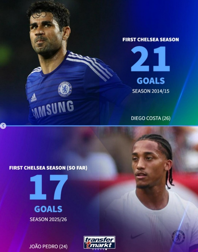 若昂·佩德罗切尔西首秀赛季打进17球,已超过莫拉塔、卢卡库等人